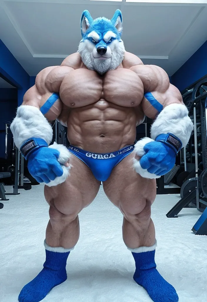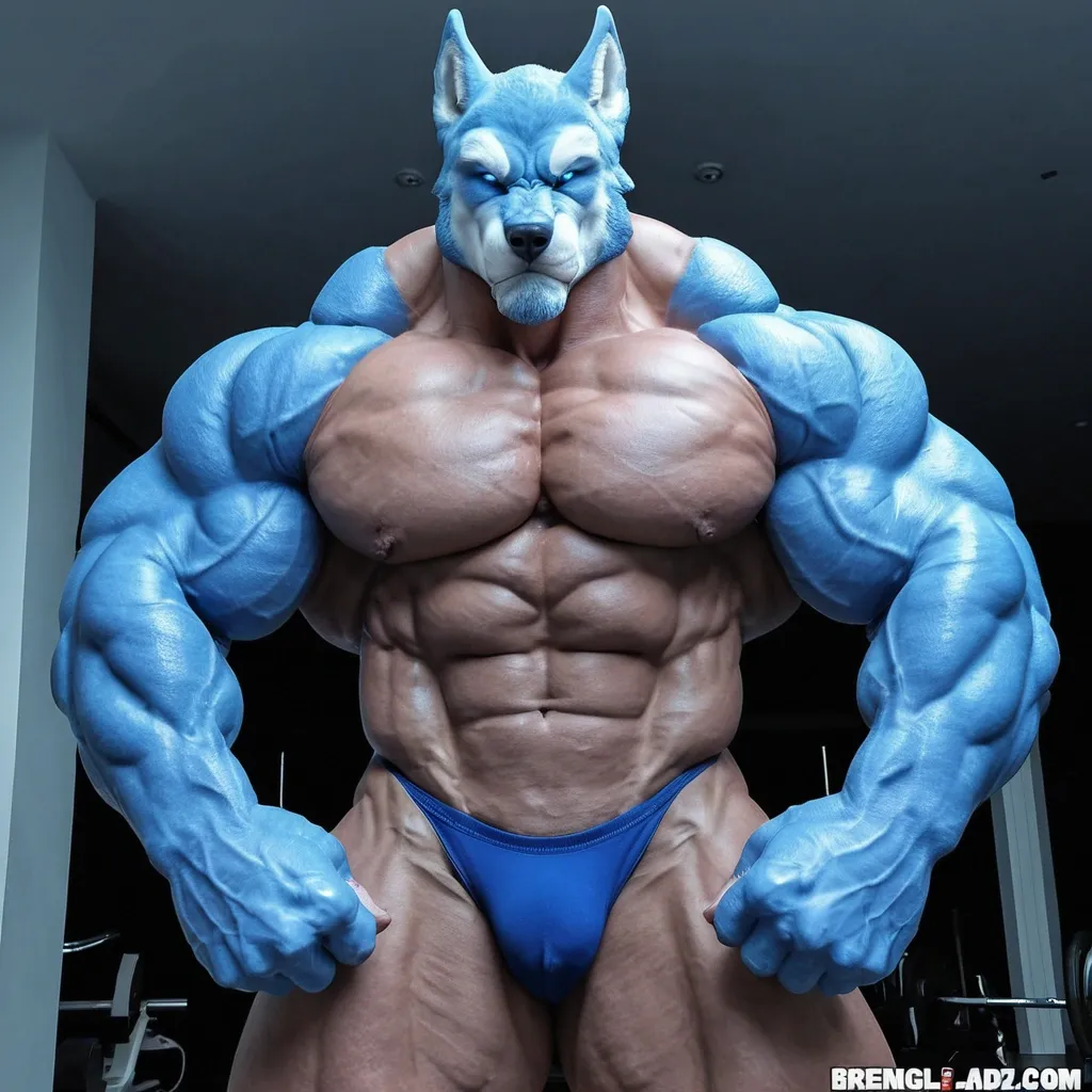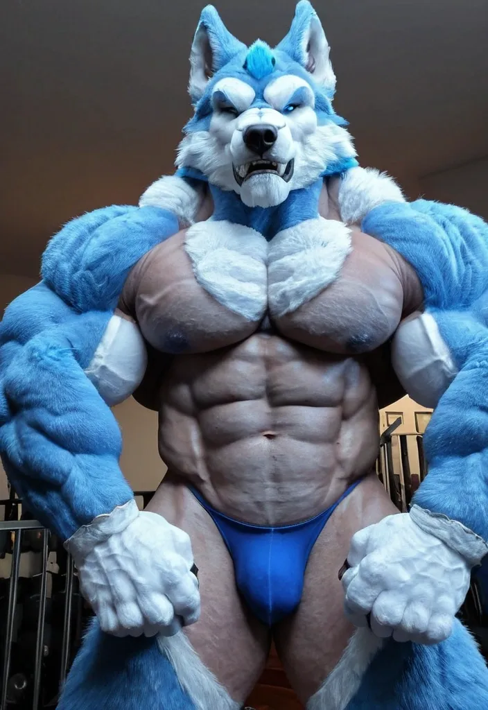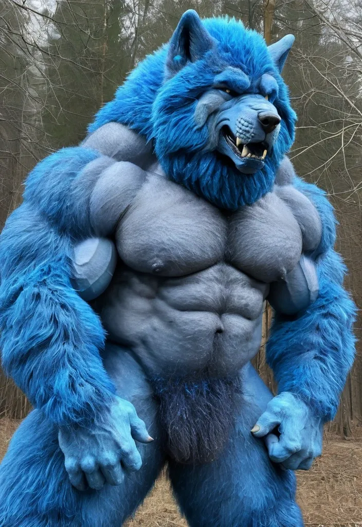 Big blue muscule growht furry wolf a ,