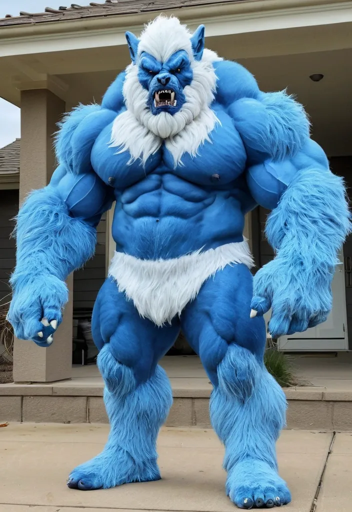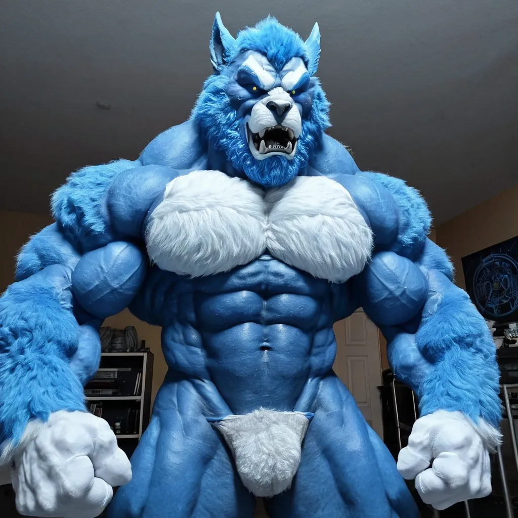 Big blue white muscule growht furry werewolf ,
