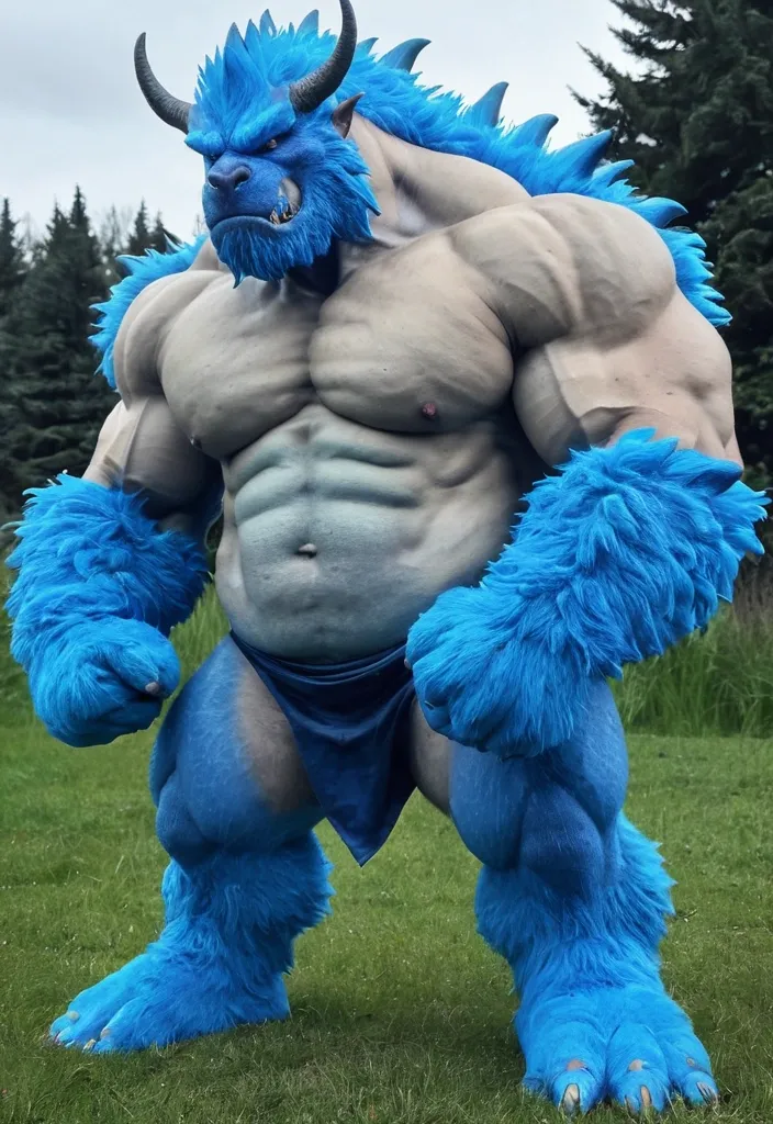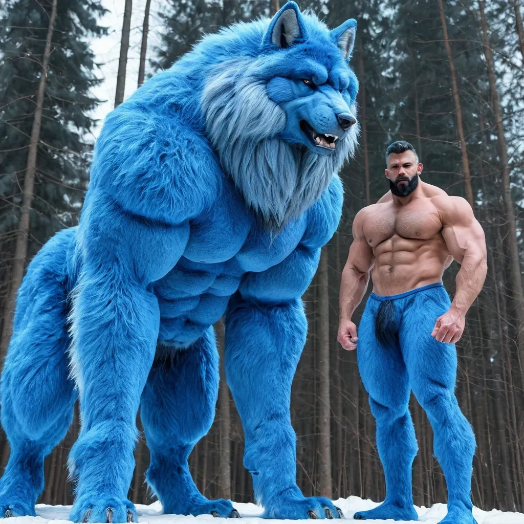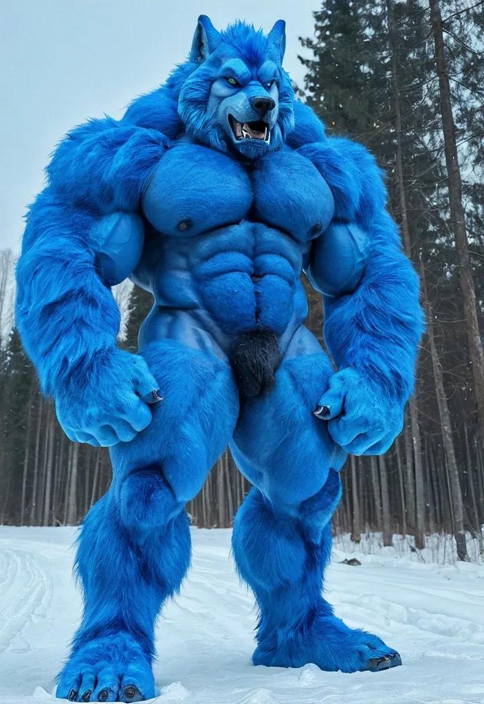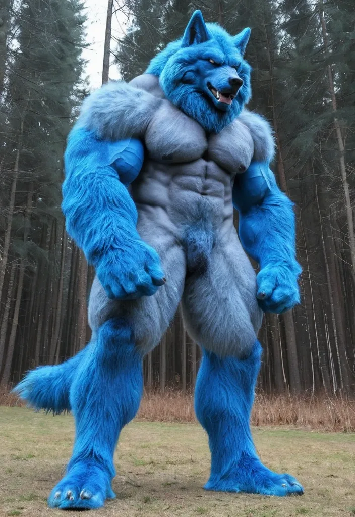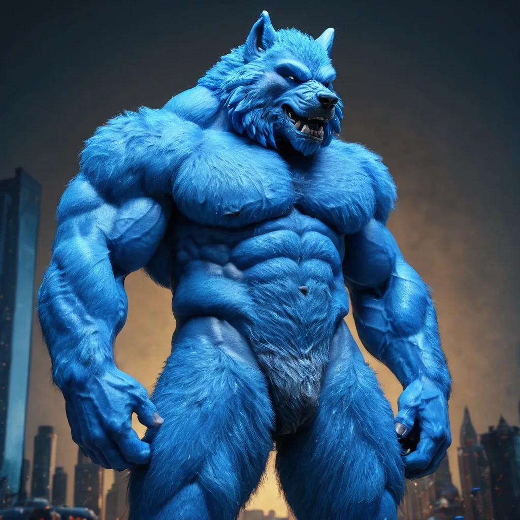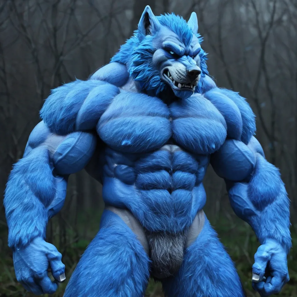 Big blue muscule growht furry wolf ,