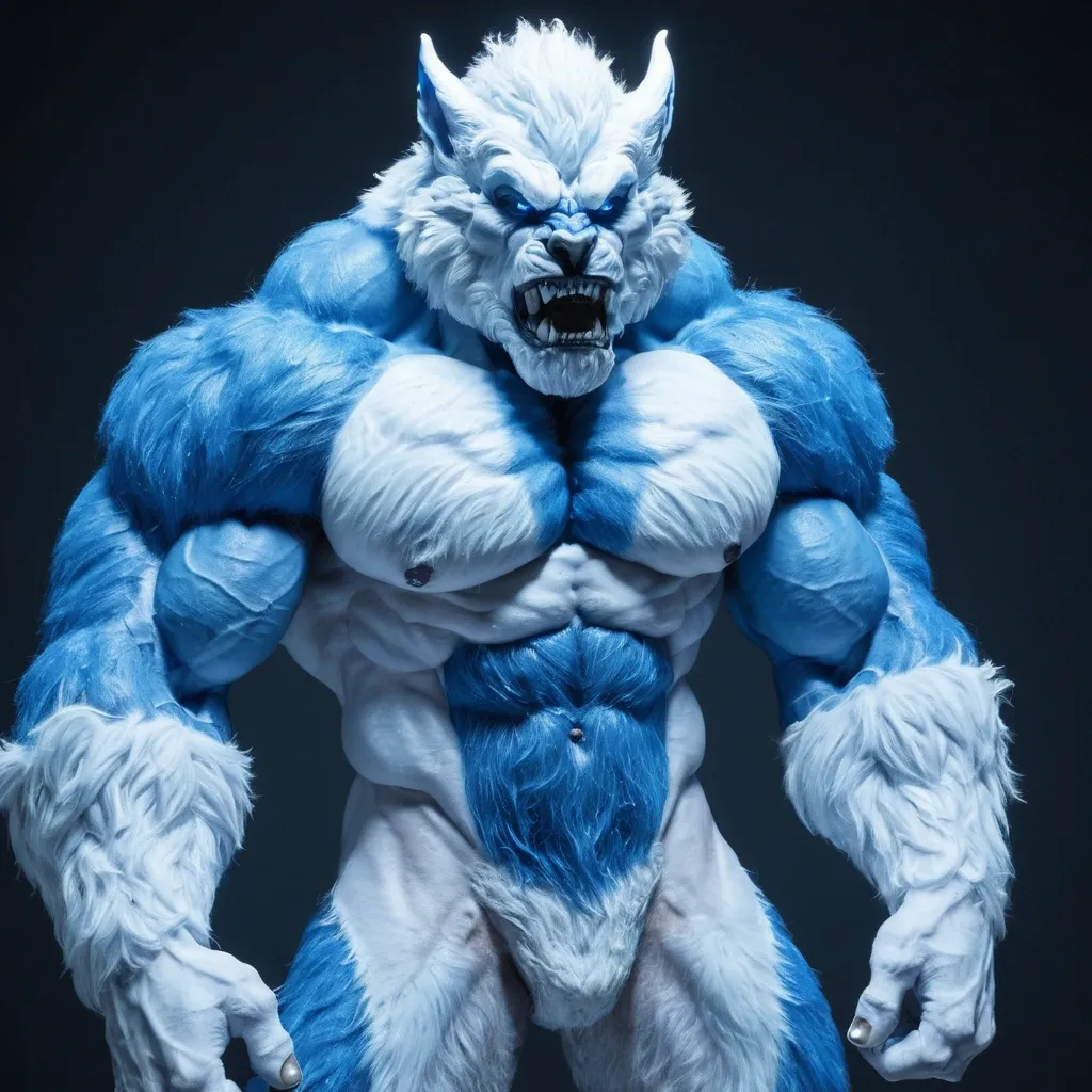 Huge and Biggest growht muscular blue white furry werewolf ,