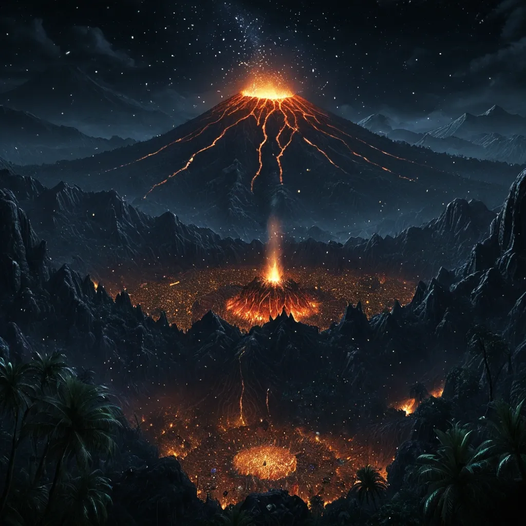 Make an underwater hybrid picture of a megalodon and a dragon. The creature should have the head of a dragon , like in Game of Thrones. The wings are huge and look like glowing lava , colors red , orange , and yellow. The hybrid's body is covered in teal , sky blue , royal blue , and indigo blue scales. The tail has a jagged fin. The back fin is scarred. The dragon's face has high cheekbones bony and big red eyes.. The background is a dark deep sea trench , with an underwater cave entrance and sharks swimming. The creature has its jaws open , with 3 rows of sharp teeth. ,