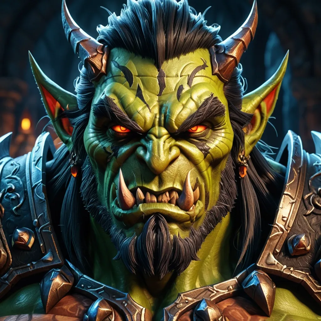 Детализированный фэнтезийный портрет в стиле артов Warcraft III и классического World of Warcraft , мультяшно-стилизованная графика с четкими черными контурами и грубыми чертами , насыщенная цветовая палитра , сложная проработанная мускулатура и анатомия гоблина , детализированные текстуры кожи и тканей , выразительная мимика лица ребенка , динамичное освещение с контровым светом и глубокими тенями , фон с элементами фэнтези-локации , высокая детализация , 8K , --ar 2:3 --no фотореализм размытость сглаживание современная графика. ,