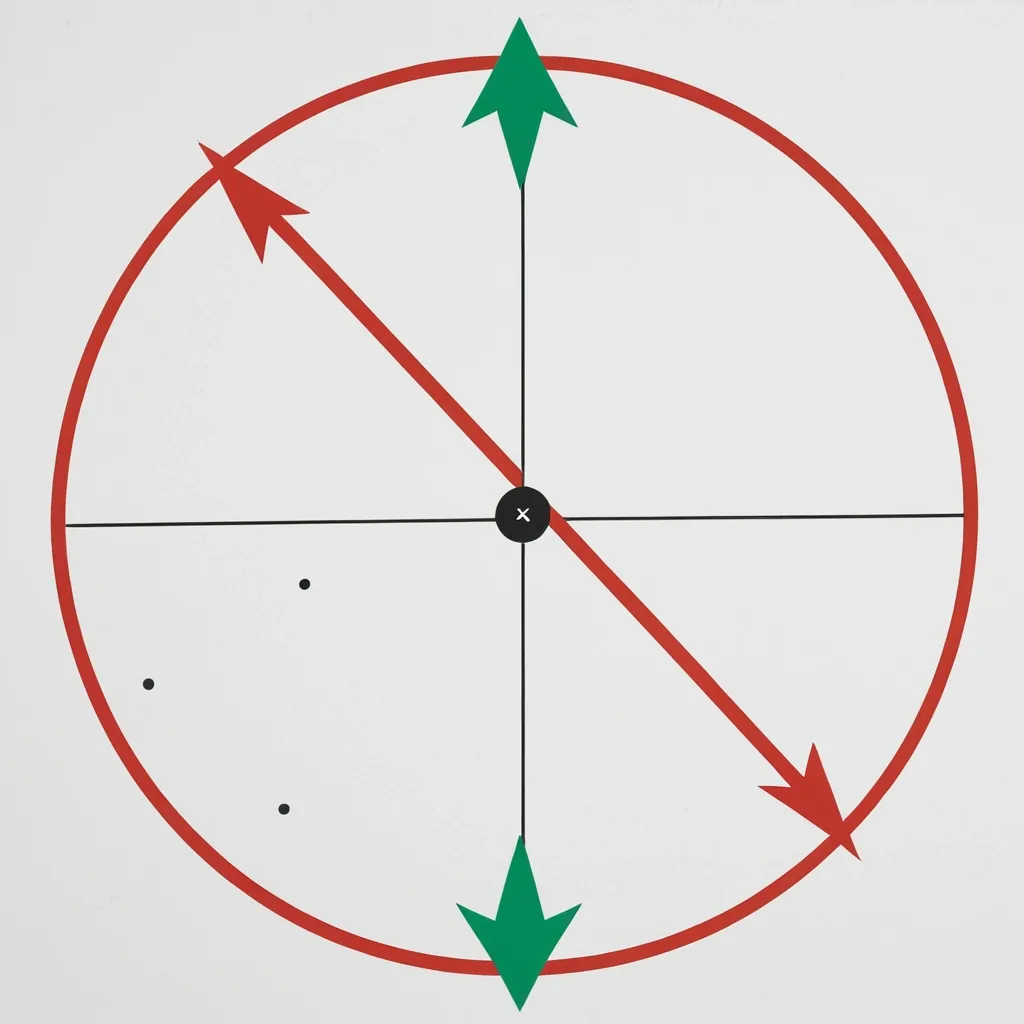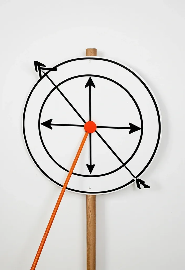 на белом фоне изображён круг , в центре круга отмечена большая точка , на этой точке закреплена палочка (одна) , на палочке на двух сторонах от центра на равном расстоянии отмечены три точки , которые меньше центральной , по краям откружности отмечеы две стрелочки , показыавающие направление движения ,
