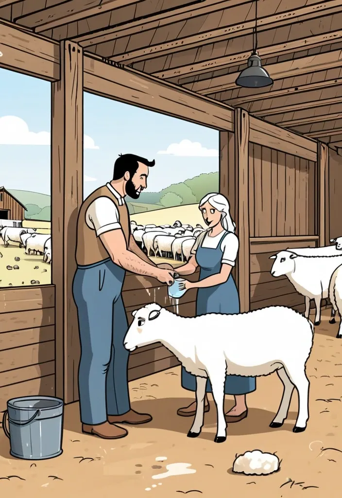 ها هي الصفحة الجديدة جاهزة 🎨 تُظهر الأب وابنه وابنته الصغيرة داخل الحظيرة وهم يقدمون الماء للخروف بطريقة لطيفة ومليئة بالحنان، بأسلوب كرتوني بسيط جدًا بخطوط رفيعة ونظيفة، بدون أي تظليل أو تفاصيل زائدة ,